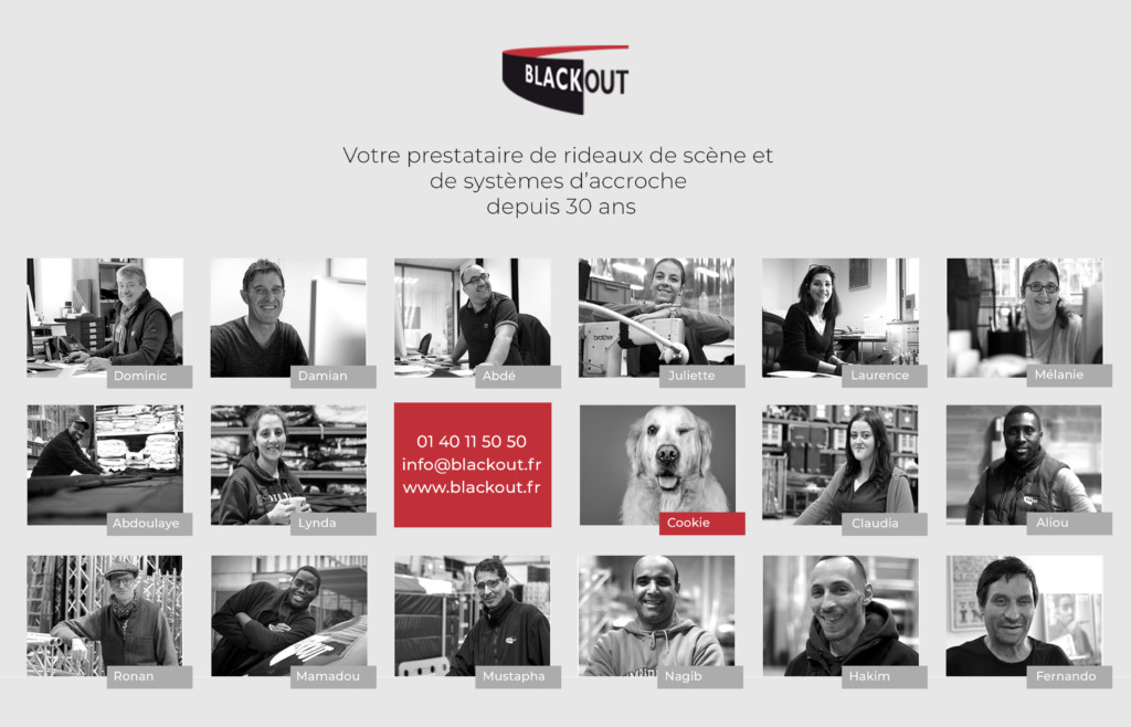 Fondée en 1990, la société Blackout propose ses services de location, vente, confection et installation de rideaux de scène, rideaux étoilés, systèmes d’accroche et de levage.