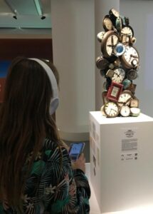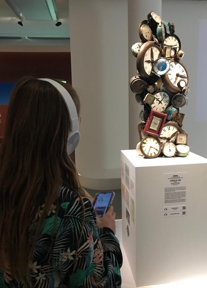 Dans une scénographie signée Scénografiá, cherchant à faire ressentir les tensions spatiales et temporelles au cœur du propos, cinq œuvres choisies offraient aux visiteurs la possibilité d’accompagner leur voyage visuel d’un étonnant voyage sonore immersif.