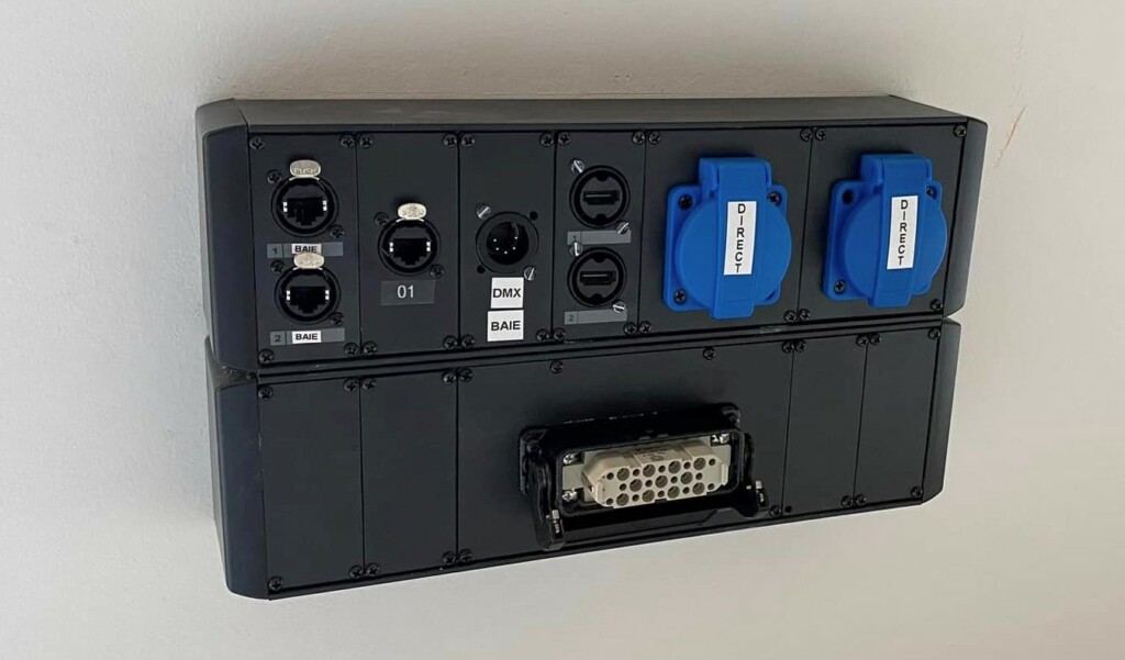 Une installation réseau a été déployée pour équiper et relier l’intégralité des salles et espaces. Ceci permet une distribution numérique des signaux audio et vidéo quand c’est nécessaire, en fonction du niveau d’exploitation de la salle. Ils sont facilement accessibles via une baie de brassage et des panneaux de connexion murale construits à partir de modules CASY.
