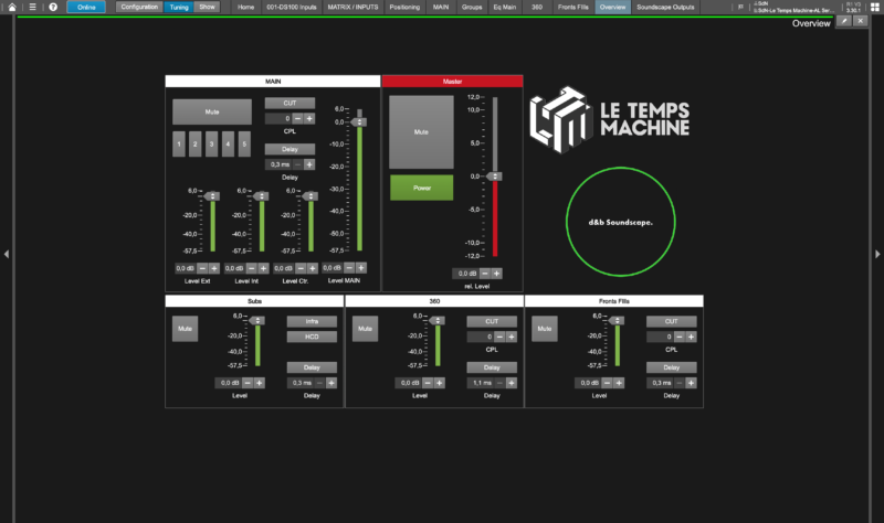 “Scène de Nuit est l’intégrateur historique du Temps Machine. Nous avons installé leurs premiers systèmes de sonorisation d&b. Quand le sujet d’un système de diffusion sonore spatialisée a été évoqué pour la grande salle, nous savions que nous avions une solution performante avec le Soundscape et que la mise à niveau de la diffusion existante allait être une réussite totale. Finalement, l’investissement n’est pas très éloigné de celui d’une classique réhabilitation technique et le gain en créativité et en satisfaction est incomparable. Le Temps Machine est le précurseur parmi les SMACs de France. Nous sommes persuadés que d’autres suivront la même démarche pour l’installation permanente. Nous sommes prêts à les accompagner aussi dans leurs prestations. Soundscape vient de rejoindre notre parc de location.” Sébastien Bargue, gérant de Scène de Nuit.