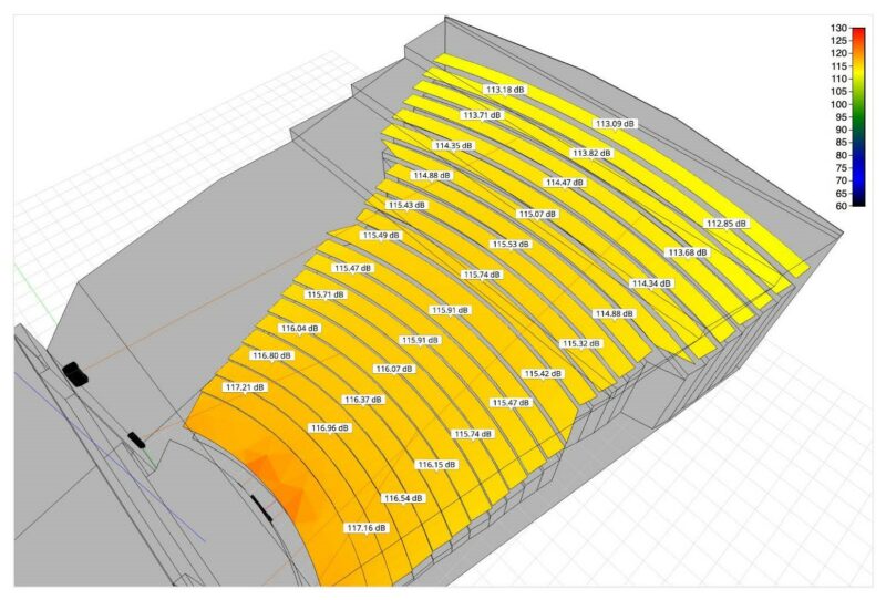 Si le choix du système était bien sûr motivé par la recherche de la meilleure restitution sonore possible, c’est toutefois le paramètre de discrétion qui primait pour en déterminer son aspect et sa configuration”, explique Joannes Poète, ingénieur bureau d’études chez TSE. “Ce paramètre rendait évidemment impossible l’exploitation d’un système de type line-array et nous dirigeait vers un système hybride composé d’enceintes point source et colonne qui prédestinait déjà l’utilisation d’enceintes FOHHN. L’enceinte PT-70 avec son double 12” permettent d’obtenir un très bon rendement dans les basses fréquences même sans subwoofer. Une commutation à l’arrière de l’enceinte permet de choisir entre le mode omni ou le mode cardioïde, que nous utilisons ici pour éviter toute pollution sonore sur scène. Un avantage considérable qui permet d’utiliser des microphones omnidirectionnels sans risque d’accrochage quand l’artiste est en nez-de-scène sous les enceintes. Après simulation et calage temporel du système, nous obtenons une pression acoustique parfaitement homogène sur l’intégralité de la salle, accompagnée d’une excellente intelligibilité. Le résultat obtenu a confirmé que nous avions fait le bon choix, alliant discrétion et rendement, tout en permettant de répondre à une enveloppe budgétaire modérée.”