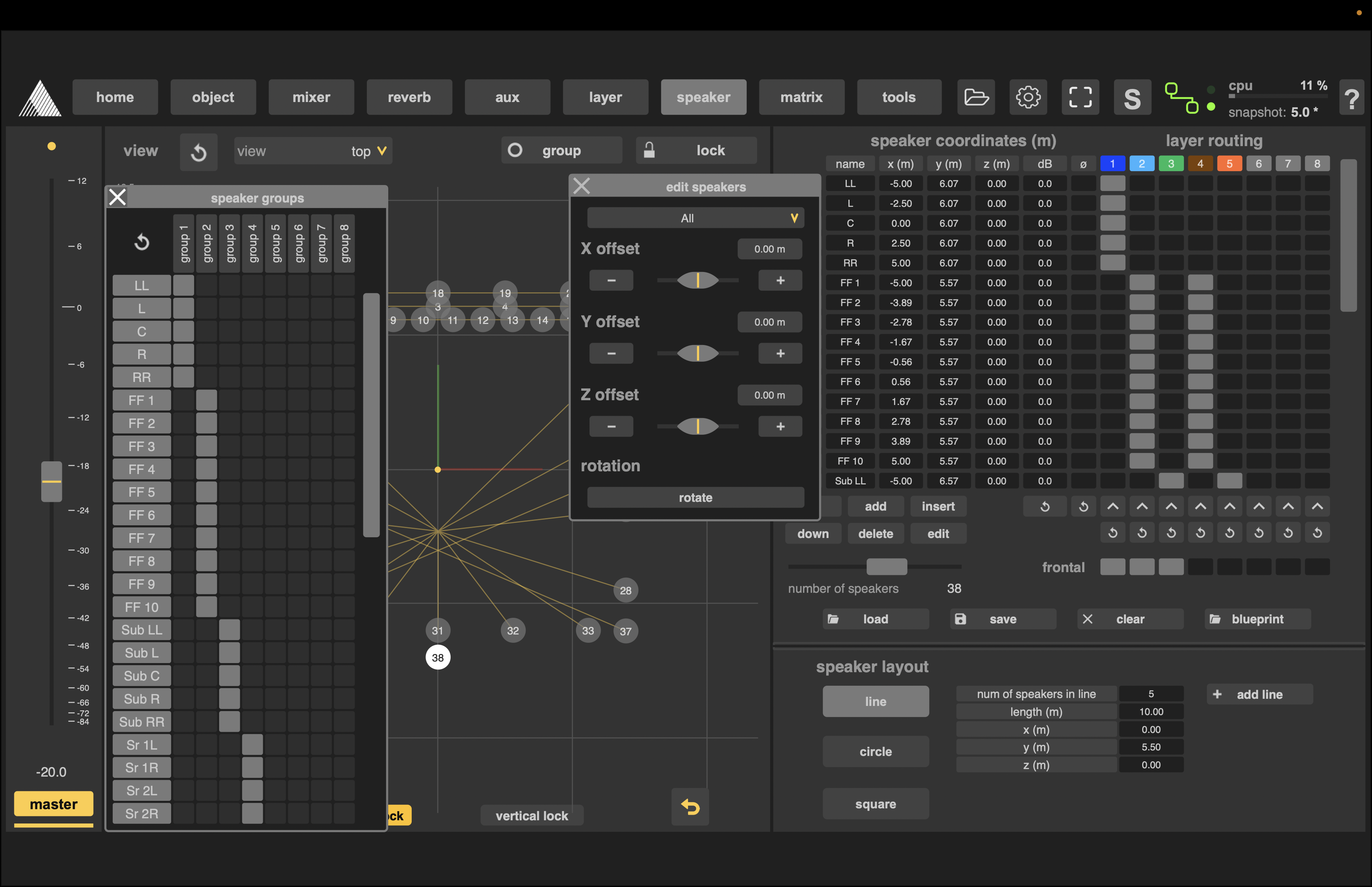 – Une gestion améliorée des groupes de haut-parleurs permet de réaliser avec simplicité des configurations hybrides complexes mêlant 2D et 3D ;