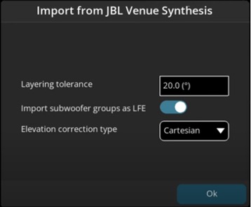 À partir de la version 1.1 de Venue Synthesis, les fichiers .vsyn peuvent désormais être importés directement dans l’éditeur de haut-parleurs de SPAT Revolution. Cette opération inclut une optimisation de la disposition des haut-parleurs au niveau de leurs élévations ainsi qu’une gestion des configurations de subwoofers par ajout de canaux LFE. L’importation exclut les “system groups” non actifs, ce qui permet de gérer de larges configurations en n’important que le nécessaire ou d’effectuer de multiples importations pour créer dans SPAT plusieurs arrangements différents d’enceintes ou de subwoofers.