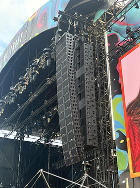 Le système de diffusion de la scène principale mettait en œuvre un ensemble d’enceintes L-Acoustics de la série K, comprenant des suspensions gauche/droite composés de douze K1, complétés par quatre subwoofers K1-SB en position supérieure et deux K2 en position inférieur, et juste derrière, deux grappes gauche droite de 12 KS28 suspendus. Au sol, 8 autres subwoofers KS28 en front de scène, complétés par 14 KARA II et 4 A10 en in fill. 26 K2 étaient exploités en out fill et les systèmes de rappel comprenaient 16 K2 et 6 KARA II. L’espace VIP était sonorisé par des enceintes X12 et X8. Le système d’enceintes était piloté par des contrôleurs amplifiés LA12X via un réseau Milan-AVB et des switchs LS10. “Grâce aux systèmes de sonorisation L-Acoustics, nous sommes en mesure de créer des expériences audio exceptionnelles« , explique Samuel Birais. « La flexibilité du système nous permet de nous adapter à différents styles musicaux, qu’il s’agisse de sets EDM ou de performances acoustiques, garantissant ainsi une qualité sonore optimale pour chaque artiste.”