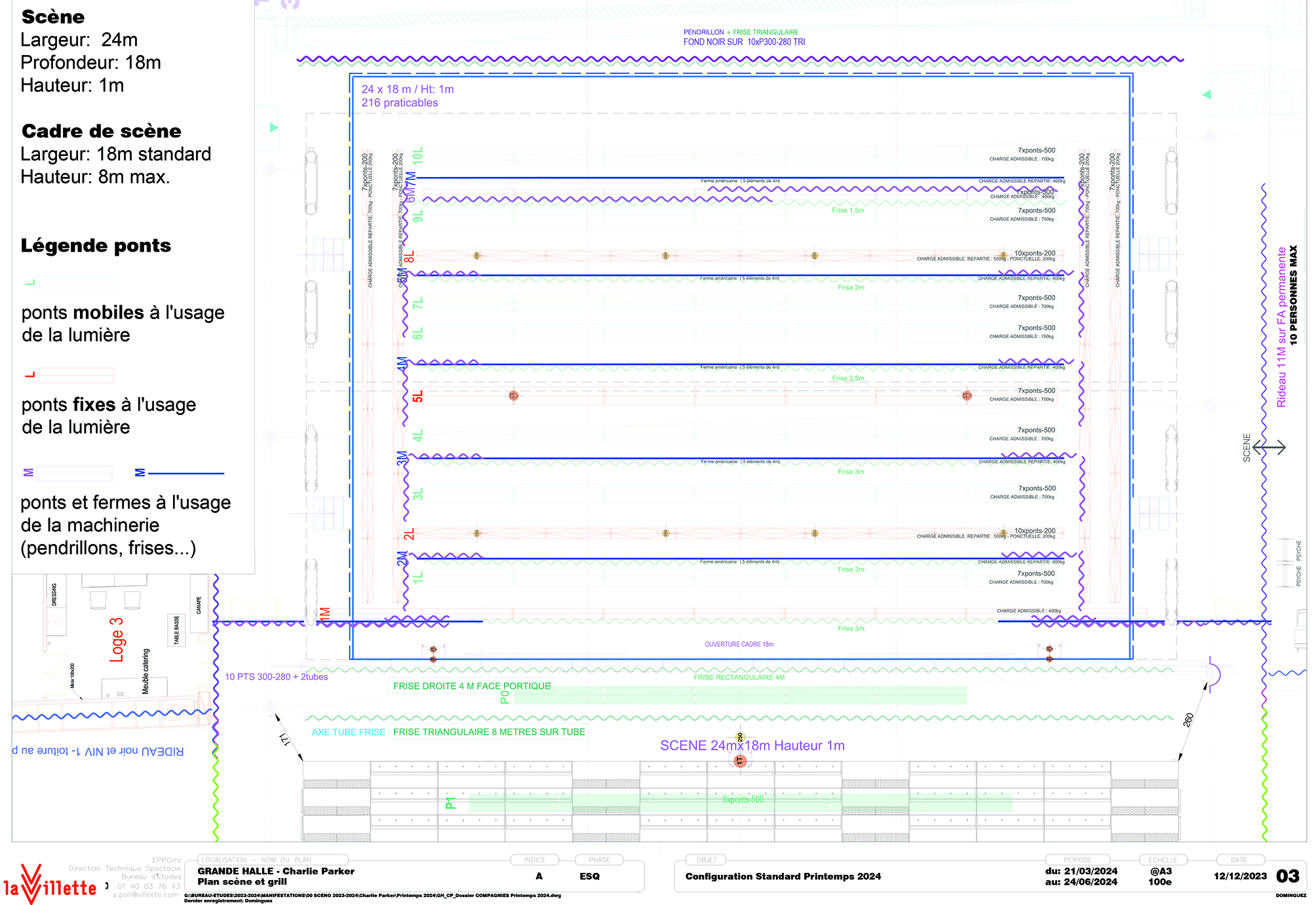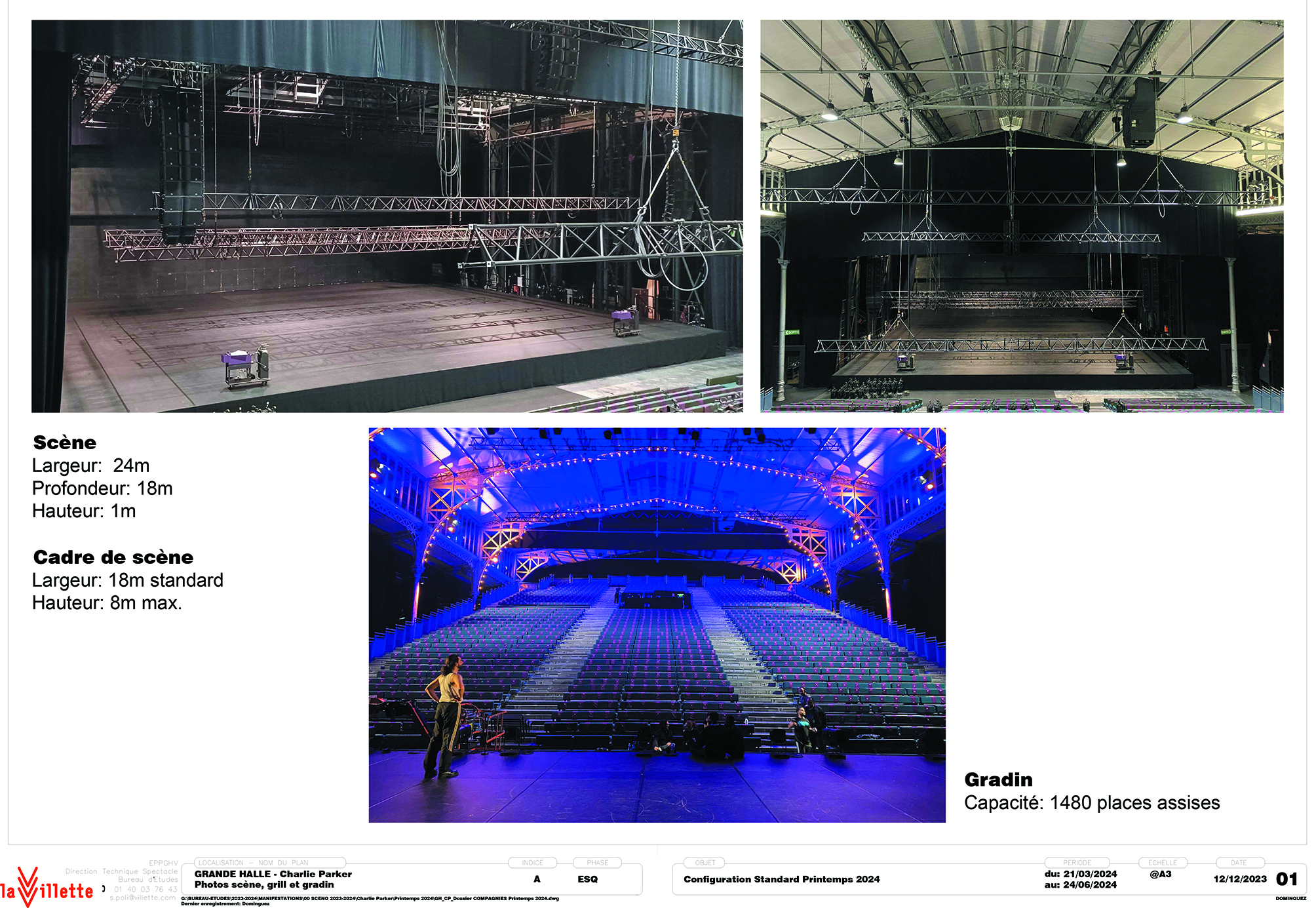 Fabrice Truffert : Avec le temps, nous avons standardisé un espace qui s’appelle Charlie Parker qui se compose d’un module type avec un gradin de 1 300 places, une scène qui fait 24 m d’ouverture par 19 m de profondeur et peut monter à près de 1 m de hauteur. Là où il y a standardisation, c’est que nous essayons de vendre une implantation avec deux portiques rapprochés qui constituent une base qui ne bouge pas trop entre deux projets. Malheureusement nous n’y arrivons pas toujours, donc parfois nous sommes obligés de casser des ponts, des moteurs et de refaire une configuration un peu différente entre les projets.