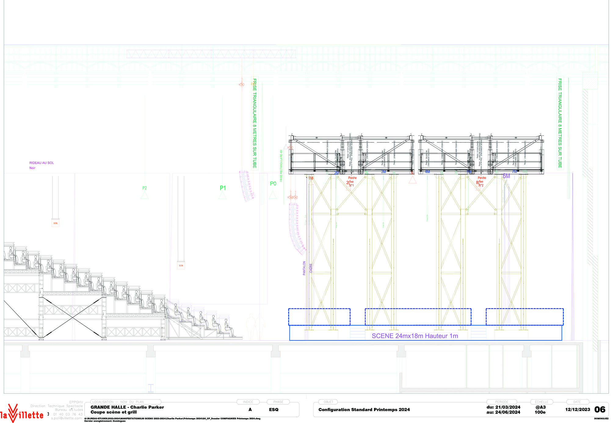 Thomas Garel : Effectivement, nous recevons des spectacles avec une fiche technique plus ou moins développée que nous dessinons en plan tel que nous l’entrevoyons dans l’une des parties de la Grande Halle. Il est ensuite transmis à la Compagnie qui corrige, retravaille, … L’ensemble du travail du bureau d’études est ensuite énorme car il permet effectivement de rendre visible un projet dans l’un de nos espaces, vierge de technique à l’origine.