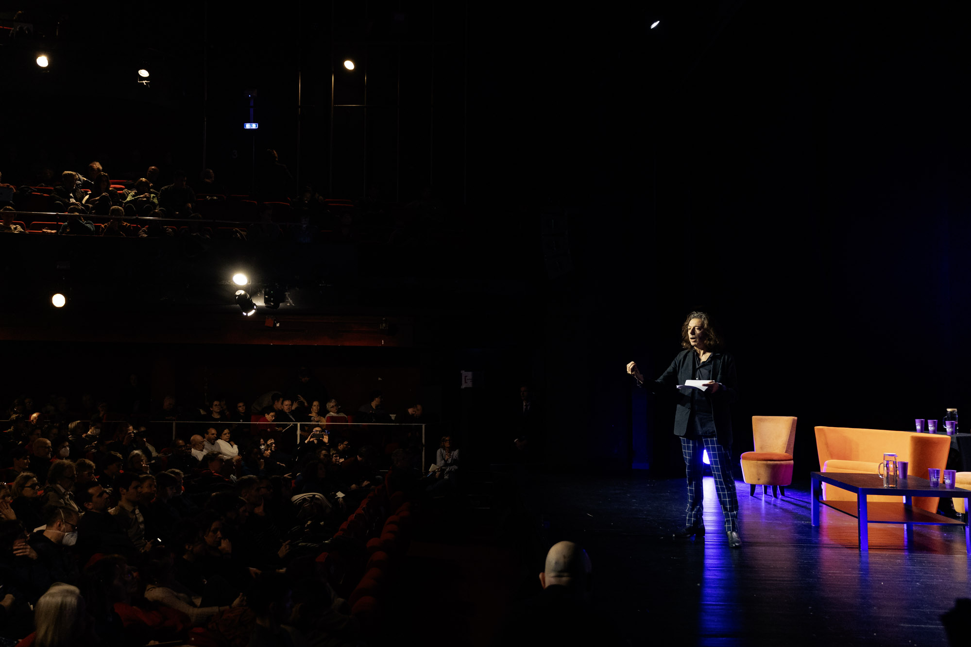 E. B. : Selon moi, le plus important selon moi est que l’on puisse dire ce que l’on pense et ne pas être d’accord. La virulence, ce n’est pas grave si l’on ne monopolise pas la parole. En ce moment, nous avons peur des gens qui ne sont pas d’accord. Le groupe [du collectif Anti-tech Résistance], qui a investi le plateau en tout début d’après-midi alors que le Contre-sommet n’était pas encore ouvert, m’a beaucoup émue. Il y avait un besoin de se faire entendre comme s’il y avait un problème d’écoute. Et je pense qu’il y a un problème d’écoute dans la société ; et si ce théâtre peut être ce lieu où l’on est capable de rester à l’écoute, sans s’énerver, mais en faisant entendre sa voix, alors nous aurons réussi quelque chose.