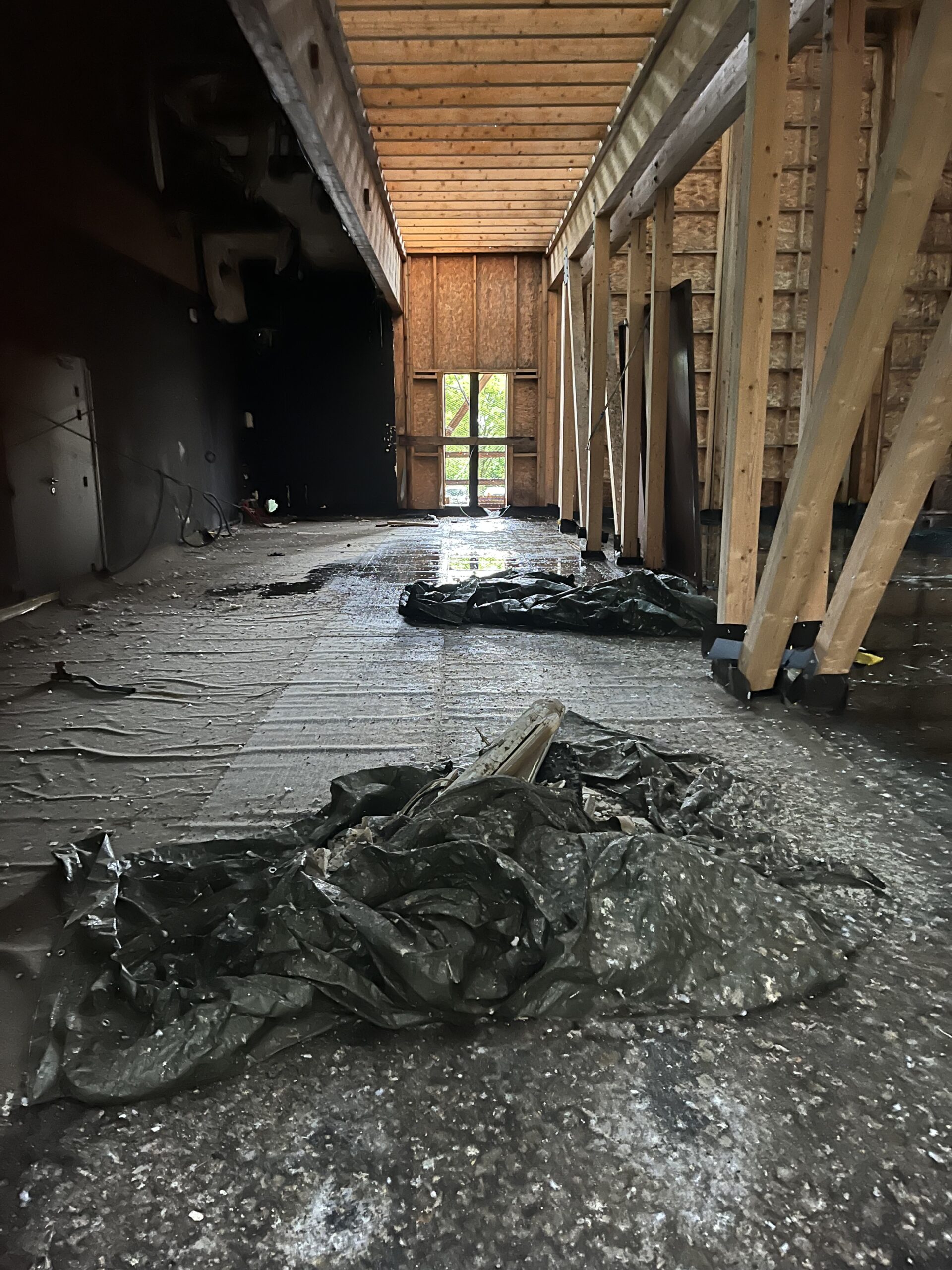 Thalie Lurault, directrice technique du CCNR depuis déjà trois ans à l’époque, repose quelques mots au sujet de l’incendie : “La voiture en feu s’est engouffrée entre deux cloisons pare-feu à l’arrière du bâtiment depuis l’extérieur. Le feu est monté directement dans la toiture mais a très peu atteint l’intérieur et est resté coincé entre ces parois avant de détruire plusieurs poutres structurelles et de s’étendre à l’ensemble de la toiture au-dessus de la salle de spectacle. Seuls la salle de spectacle et le petit studio ont été réellement endommagés”.(1)
