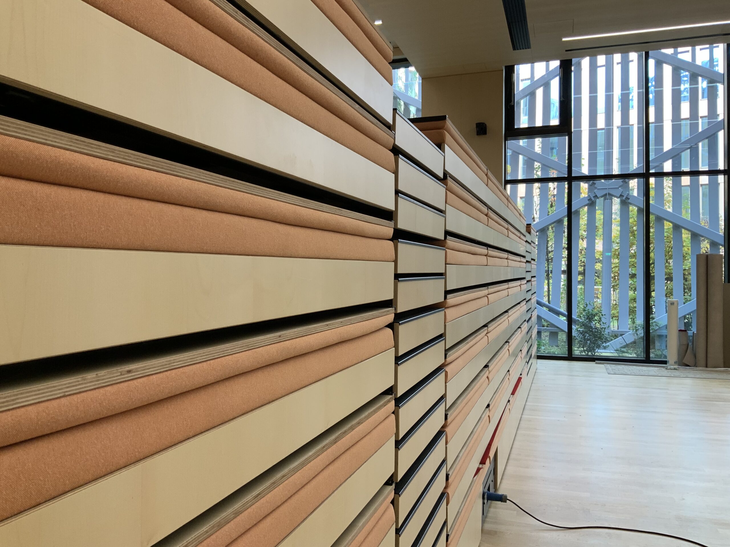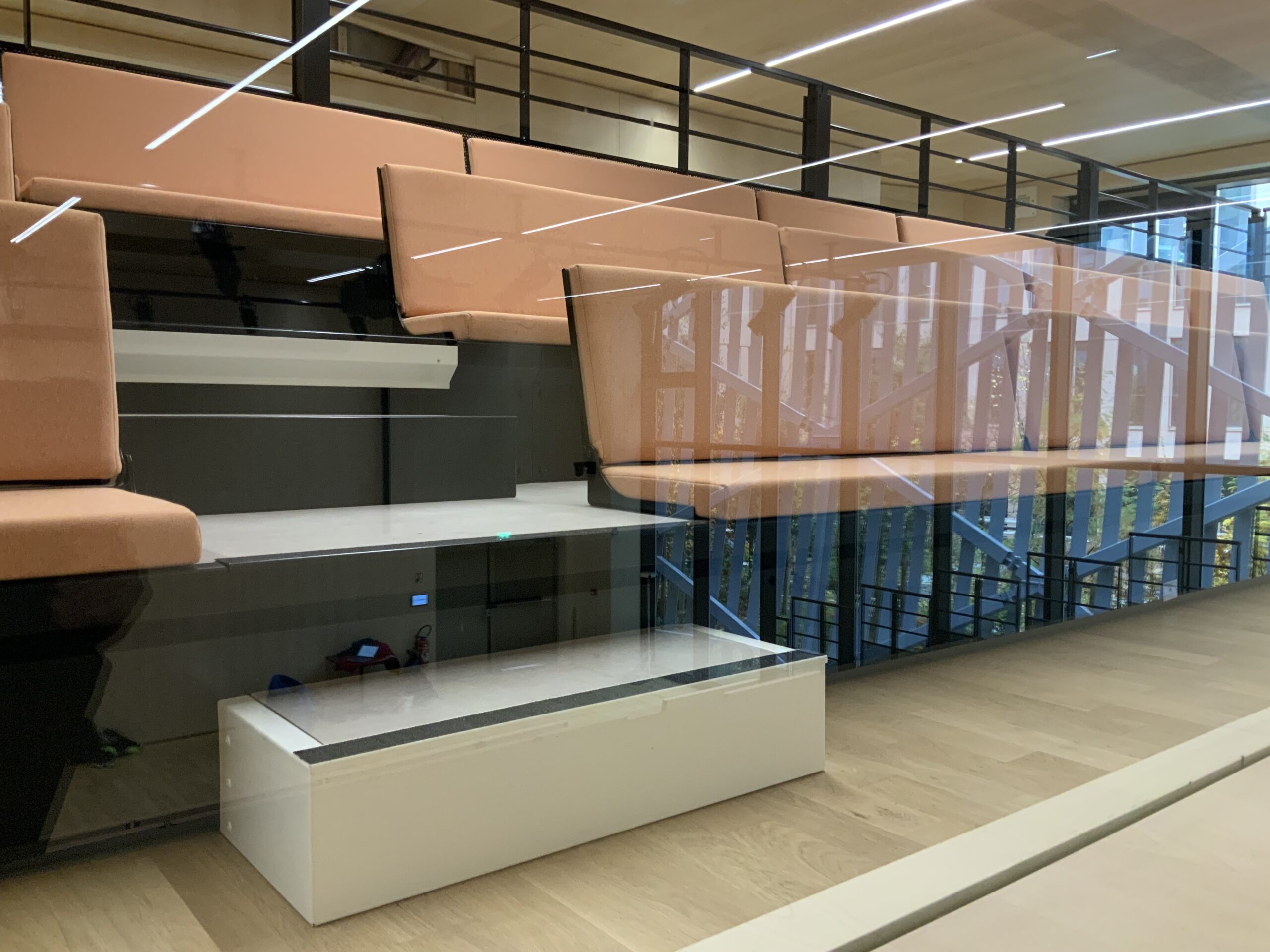 Husson International vient d’installer une tribune télescopique motorisée TS85 sur un sol en parquet massif dans le cadre d’un projet immobilier de prestige de 40 000 m² qui inclut un auditorium, à l’Aqueduc de Gentilly.