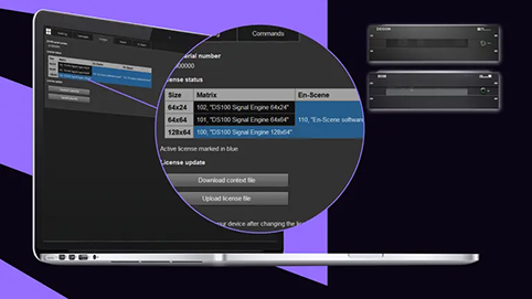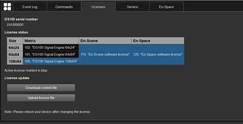 Pour permettre la gestion évolutive des entrées/sorties, le firmware du DS100 a été mis à jour. Il offre dès maintenant trois formats de licence permettant à l’utilisateur de choisir parmi trois tailles d’entrées/sorties. Cette nouvelle option permet d’offrir aux projets d&b Soundscape un format d’entrée plus flexible et plus abordable, tout en permettant aux productions plus importantes de bénéficier d’une plus grande capacité de canaux. Les utilisateurs actuels des DS100 et DS100M recevront une mise à jour gratuite du micrologiciel, qui fera passer leur traitement d’entrées/sorties maximum de 64 x 64 à 128 x 64. En outre, une nouvelle taille offrant 64 x 24 est introduite, pour un total de trois tailles différentes couvrant ainsi une plus large gamme de budgets et d’applications. Les licences peuvent évoluer à tout moment, ce qui permet aux utilisateur.rice.s d’adapter les capacités d’entrées/sorties à leurs projets et besoins spécifiques sans avoir besoin de matériel supplémentaire.