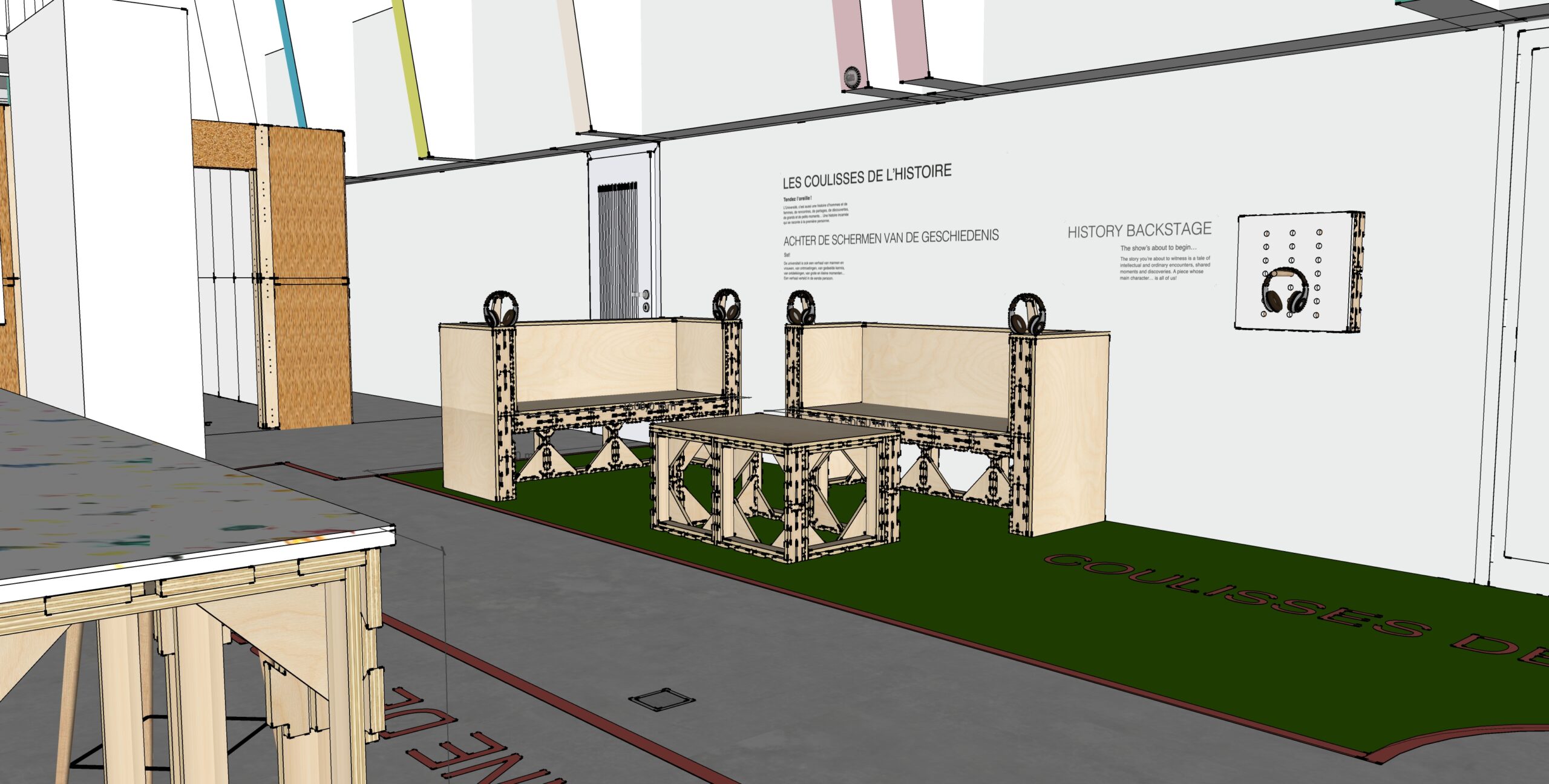 À l’origine de cette rencontre, le SITEM (Salon international des musées, des lieux de culture et de tourisme) à Paris, où l’agence KASCEN, basée à Louvain-la-Neuve, présentait, au cours de l’édition de cette année, un espace construit en modules MODS. Cette agence de scénographie d’exposition, active en Belgique et spécialisée dans la création d’espaces temporaires et permanents, avertit tout maître d’ouvrage avisé dès l’ouverture de son manifeste : “Rendre durable [votre histoire] dans sa fabrication et ses matériaux comme dans les esprits. Avant, pendant et après”. L’optique de l’économie circulaire et le soin apporté à la durabilité des matériaux utilisés et des pratiques appliquées dans ses différents projets animent l’équipe, comme nous le confie Camille Blondiaux : “Au moment du choix des matériaux, étudions tout ce qui existe déjà dans les musées ou localement, tout ce qui est réutilisable, en vérifiant que le résultat attendu satisfait esthétiquement le client”.(1) L’agence privilégie ainsi l’utilisation de pièces récupérées dans les musées et choisit des matériaux responsables, en évitant les déplacements en avion et en maximisant l’utilisation du train ou du covoiturage. Grâce à des partenariats avec des fournisseurs locaux et l’expérience acquise au cours de ses quinze années d’existence, l’équipe de KASCEN ancre désormais systématiquement ses recherches en comprenant son territoire. Dans le cadre de l’exposition Happy U!, “de nombreuses vitrines récupérées du musée et réutilisées nous ont permis de construire la scénographie du projet qui célèbre les six-cents d’existence de l’Université”, témoigne finalement Camille.