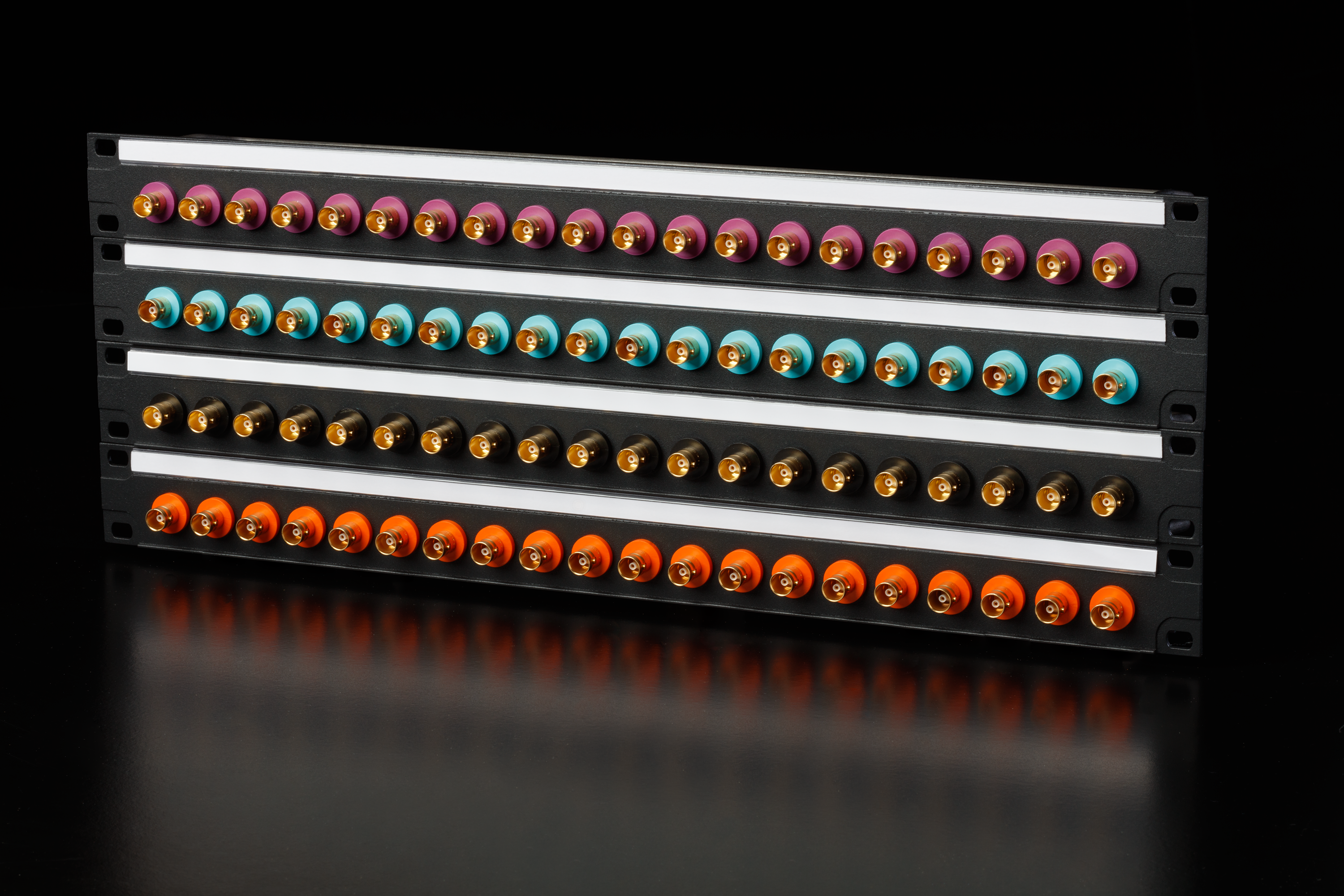 Ces panneaux de brassage UHD sont disponibles en différentes versions qui comptent chacune 20 ou 24 embases BNC isolées d’impédance 75 Ohm. Ils sont équipés de connecteurs KLOTZ BNC UHD/4K (de couleur noir uniquement) ou de connecteurs BNCpro de Damar & Hagen, disponibles dans un choix de quatre couleurs (noir, orange, violet, cyan). Les connecteurs BNC UHD et BNCpro sont entièrement compatible avec tous les BNC standards du marché tout en étant optimisés pour atteindre les meilleures performances dans les applications vidéo UHD/4K.