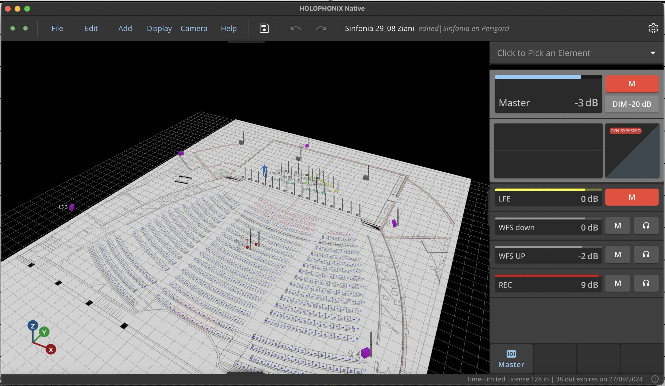 Les configurations sur scène variaient chaque jour de manière importante et parfois même au sein d’un même programme, en passant du simple duo à des configurations complètes de vingt instruments. “Avec cette facilité de mixage, je n’avais pas besoin de faire de balances. Chaque soir, je préparais les mixages objets du lendemain sur plan en seulement une heure. J’ai créé une bibliothèque d’objets et de corrections de bases pour chaque instrument, que je rappelais à l’aide de snapshots à partir d’un iPad et du logiciel Open Stage Control. Tout ceci fonctionnait parfaitement dès l’arrivée des musiciens et je profitais de leur répétition pour affiner mes réglages. En travaillant en WFS full delay, j’étais très proche de la réalité au niveau du raccord visuel entre les objets à l’écran et sur scène. J’avais en plus compensé dans les bus du système Holophonix toute la latence de ma chaîne audio. Je pouvais avec ce mode obtenir une belle profondeur dans l’image sonore, ce qui n’était pas problématique car les instruments ne bougeaient pas. J’ai néanmoins remarqué que le nouvel algorithme WFS full delay de l’Ircam se comporte beaucoup mieux dans les déplacements en générant beaucoup moins d’artefacts sur les mouvements rapides, mais qui nécessitent alors plus de ressources de calcul.”