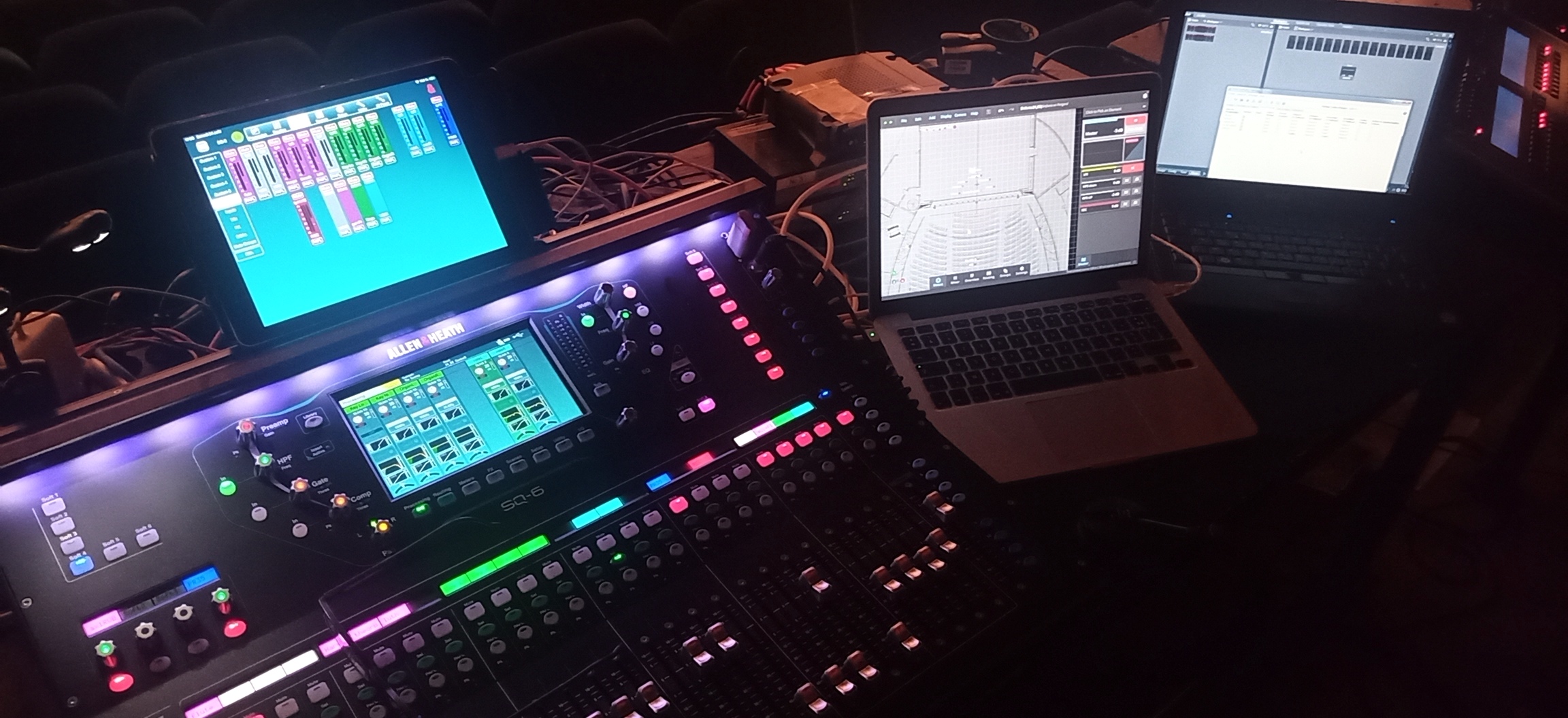 Quatre enceintes L-Acoustics 115 présentes dans le théâtre ont été installées en surround, deux sur le côté et deux à l’arrière. Elles ont été utilisées pour diffuser des effets de réverbération créés par une Altiverb XL en mode 5.1, alimentée depuis la console et gérée dans l’Holophonix en direct to master. Le choix de prise de son, une captation par instrument à 1 m avec des microphones Neumann et DPA, imposait l’utilisation d’une console, ici une Allen & Heath SQ–6 et des racks de scène DX168, reliée à l’Holophonix en Dante. “Chaque jour, les orchestres et les musiciens arrivaient et étaient horrifiés à la découverte de toutes ces enceintes et micros. Cinq minutes après avoir commencé à jouer, tout allait bien. Un musicien m’a même demandé de mettre la diffusion en service et je lui ai simplement répondu que je pouvais plutôt l’éteindre… C’était d’une facilité déconcertante à mixer. Je ne faisais quasiment que de la coupe bas et haut. Les musiciens et les directeurs artistiques étaient ravis. Ils ont même eu tout le loisir de me faire des demandes précises sur certains instruments, ce qui est plutôt inhabituel dans ce type de musique.”
