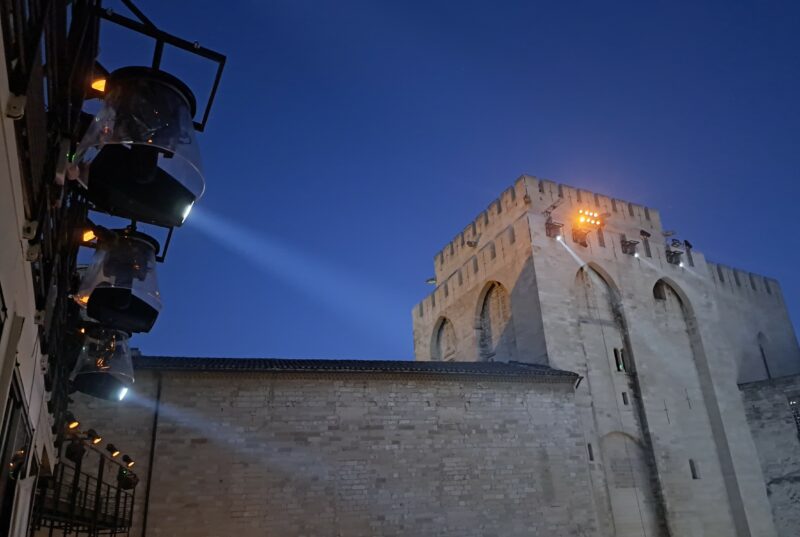 En raison des particularités physiques du Palais des Papes et des contraintes de planning du Festival, une bonne partie de l’implantation lumière reste figée pour toute la durée du Festival. Les projecteurs Rhapsodya ont été utilisés pour réaliser les éclairages latéraux (cour et jardin), tandis que les Sinfonya, ont été installés en contre et à la face. Les projecteurs ont été à la hauteur des attentes et ont su s’adapter aux différentes contraintes : “Les conditions de création à la Cour d’Honneur sont très spécifiques : l’architecture du lieu, les contraintes de temps et la pression ressentie par les compagnies rendent notre travail unique”, précise Manuella.