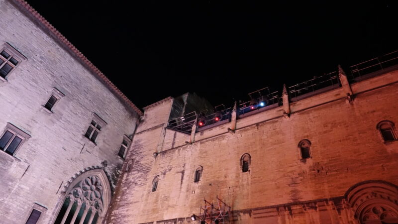 En raison des particularités physiques du Palais des Papes et des contraintes de planning du Festival, une bonne partie de l’implantation lumière reste figée pour toute la durée du Festival. Les projecteurs Rhapsodya ont été utilisés pour réaliser les éclairages latéraux (cour et jardin), tandis que les Sinfonya, ont été installés en contre et à la face. Les projecteurs ont été à la hauteur des attentes et ont su s’adapter aux différentes contraintes : “Les conditions de création à la Cour d’Honneur sont très spécifiques : l’architecture du lieu, les contraintes de temps et la pression ressentie par les compagnies rendent notre travail unique”, précise Manuella.
