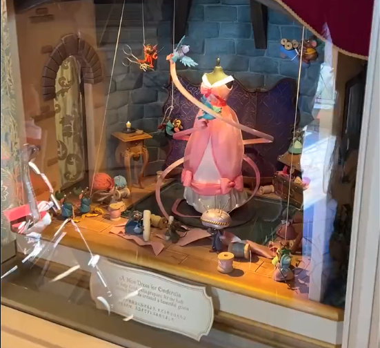 Plongez dans la féerie de Tokyo Disneyland avec cette vitrine dédiée à Cendrillon.