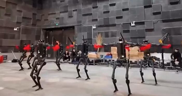 Des robots et des humains ont partagé la scène dans une chorégraphie parfaitement synchronisée, montrant :