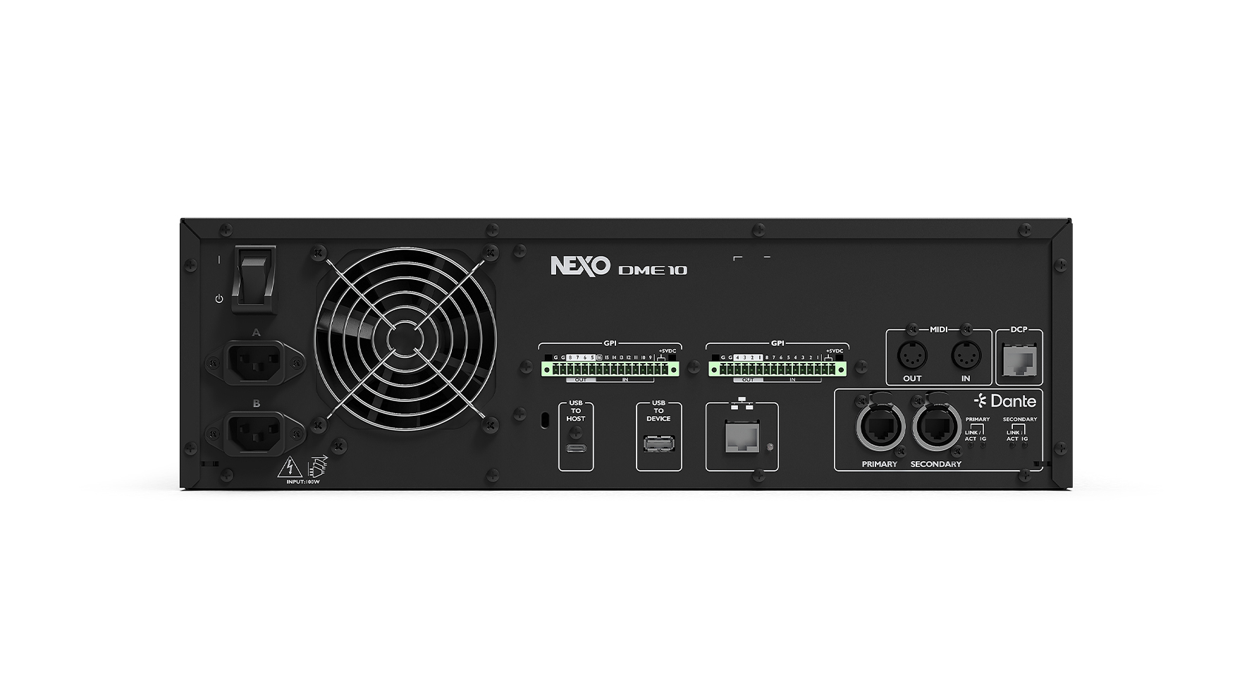 Présenté à l’ISE 2025, le DME10 de NEXO est un puissant processeur audio immersif 256 x 256 équipé d’une interface Dante, offrant jusqu’à 128 entrées/64 sorties de mixages objet AFC (Active Field Control) avec réverbération tridimensionnelle.