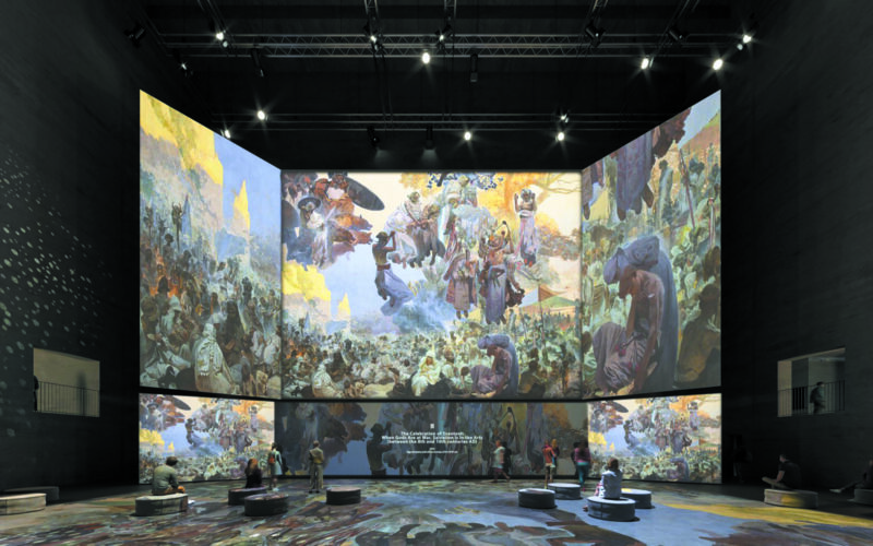 De l’art nouveau à l’hologramme Au Grand Palais Immersif, un “Éternel Mucha” est mis à l’honneur sans qu’y figurent les œuvres originales de l’artiste. Déjà